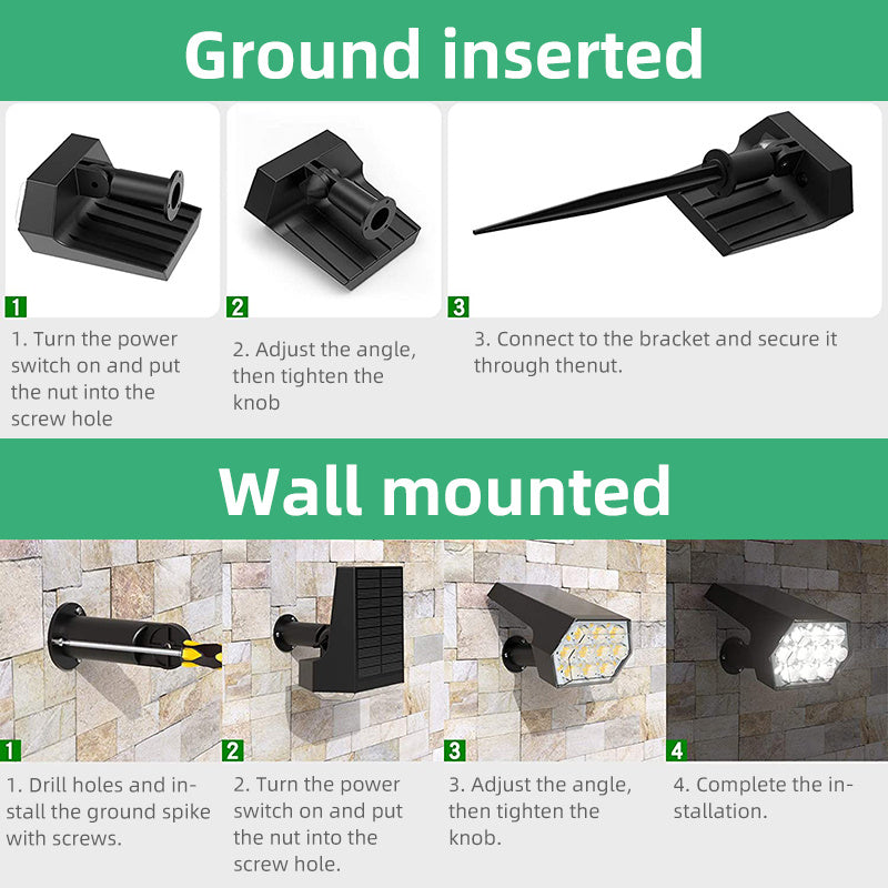 1. Please install the LED solar light outdoors facing south, make sure the solar panel receives sunlight directly without shading or glass.